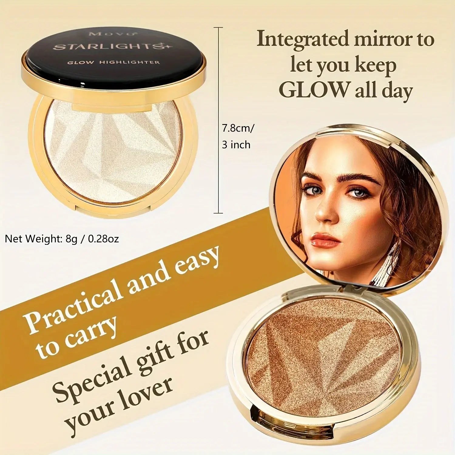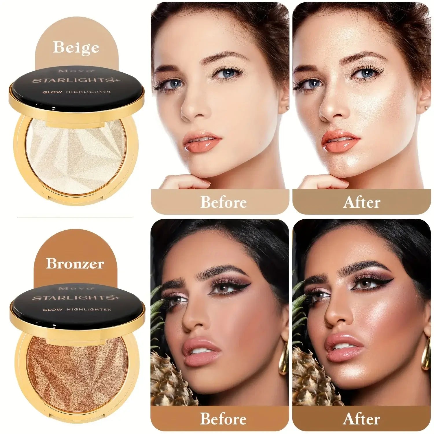 The smooth, blendable powders glide effortlessly onto the skin, providing buildable coverage for subtle daytime shimmer or bold, striking evening glow. Its versatile shades are suitable for all skin tones and can be layered for customized intensity on cheekbones, brow bones, nose bridges, and cupid’s bow.